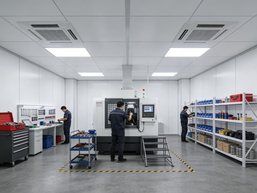 車間全域搭載高精度恒溫恒濕調(diào)控系統(tǒng),可實現(xiàn)溫濕度精準(zhǔn)管控,誤差穩(wěn)定在±0.5℃、±3%RH內(nèi),為精密生產(chǎn)提供恒定環(huán)境保障。各功能區(qū)域布局科學(xué),涵蓋核心加工區(qū)、檢測區(qū)、倉儲區(qū)等,均預(yù)留標(biāo)準(zhǔn)化設(shè)備安裝位與管線接口,適配自動化生產(chǎn)線布局。整體空間既滿足潔凈生產(chǎn)要求,又兼顧運維便捷性,全方位護(hù)航高端產(chǎn)品生產(chǎn)品質(zhì)。