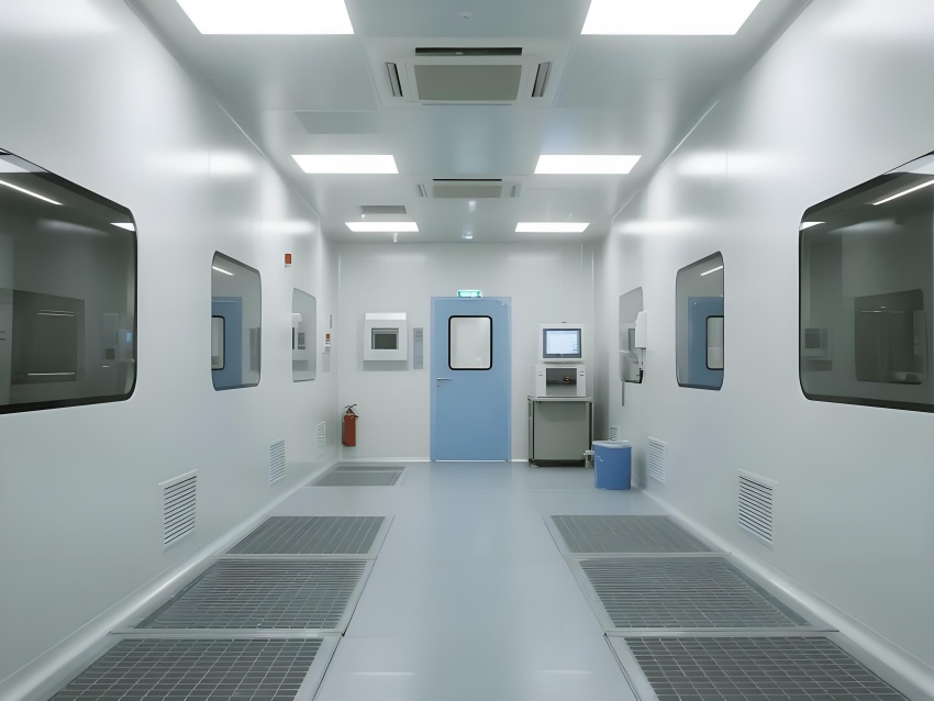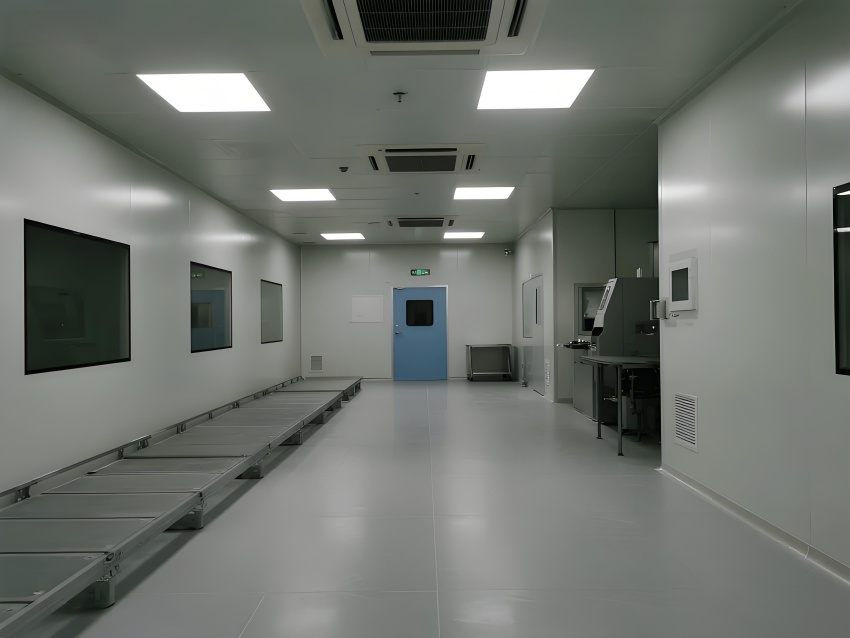 地面為導靜電高架地板系統,確保微振動控制與管線隱蔽;墻面采用航空級鋁復合板,陽極氧化處理防靜電;頂面集成ULPA超高效過濾模塊,配合負壓梯度控制氣流。