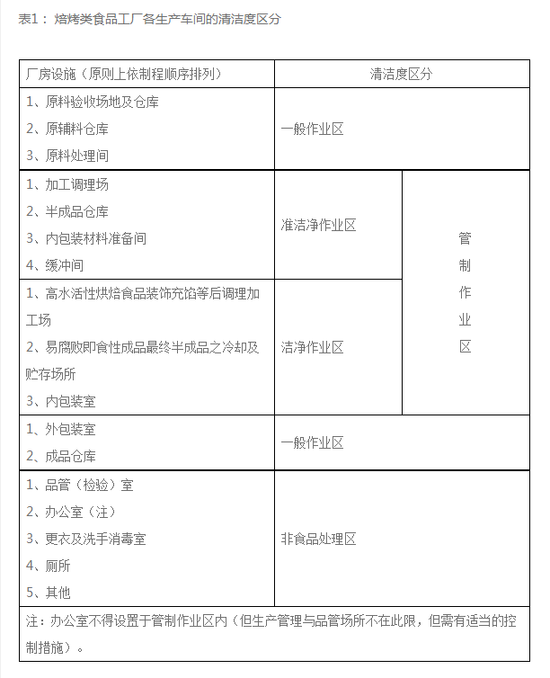 表1: 焙烤類(lèi)食品工廠各生產(chǎn)車(chē)間的清潔度區(qū)分