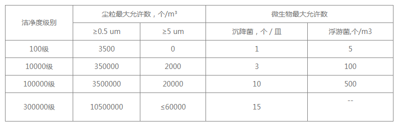 三、無(wú)菌醫(yī)療器械潔凈區(qū)潔凈度等級(jí)表
