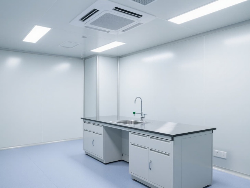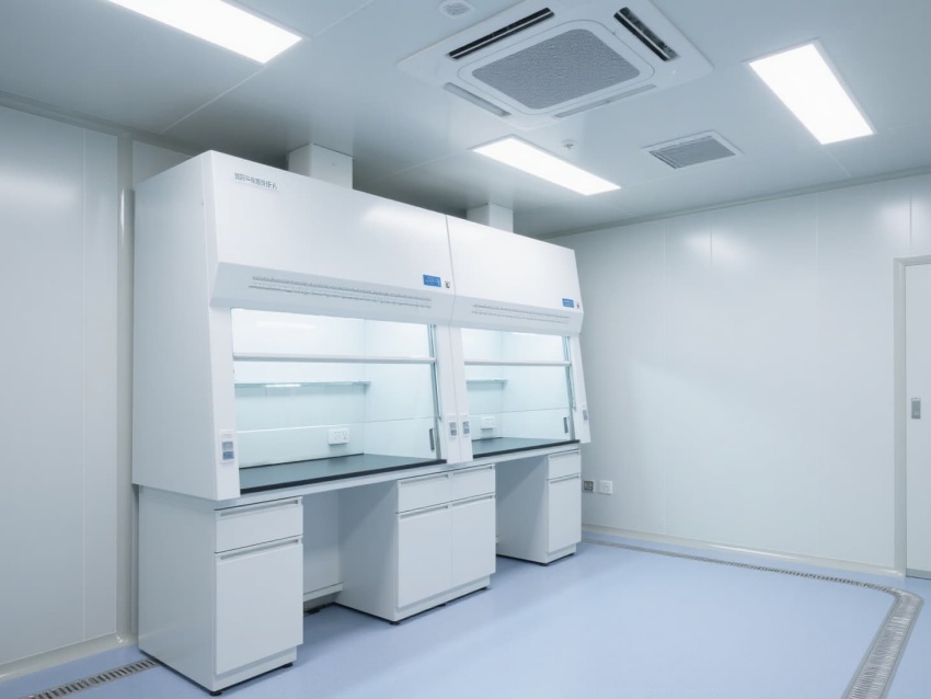 空間配備不銹鋼實驗臺基礎框架,預留耐腐蝕試劑架與電源接口,嵌入式LED燈帶提供400lux均勻照明。恒溫恒濕系統精準控制溫度(20-24℃)與濕度(50-60%),潔凈門窗采用雙層鋼化玻璃,兼顧密封性與觀察便利性,全方位保障實驗數據的準確性與可靠性。