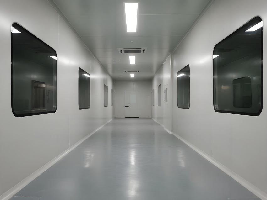 本凈化車間采用"科技極簡主義"風格,通過流暢的線性布局與模塊化設計強化專業感。主空間以珍珠白與淺灰為基調,搭配天藍色送風管道形成視覺引導,環氧地坪的鏡面效果反射頂部藍色凈化燈帶,營造無菌環境的通透感。設備區采用不銹鋼原色與玻璃觀察窗形成材質碰撞,電子屏實時數據可視化增強科技屬性。嚴格的人貨分流設計通過色彩編碼實現功能識別,墻面嵌入式消防與應急系統保持視覺平整。整體空間通過減少視覺噪點、強化功能分區線條,在滿足GMP動態潔凈要求的同時,呈現現代食品工業的精密與秩序之美,透明亞克力標識牌與柔光照明進一步減輕密閉空間的壓抑感。